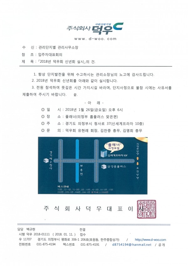 ■ 2018년 덕우회 신년회를 개최합니다. 페이지 정보 작성자 최고관리자 (115.♡.139.242) 작성일18-01-11 13:06 조회6,797회 댓글0건 관련링크 이전글 다음글 목록 본문 전원 참석하시어 뜻깊은 시간을 가졌으면 좋겠습니다.단지사정으로 불참시에는 사유서를 제출하여 주시기 바랍니다. 댓글목록 등록된 댓글이 없습니다. 이전글 다음글 목록